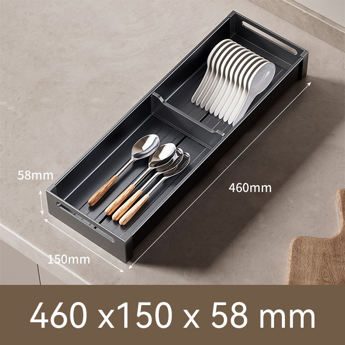 Made from durable aluminum alloy, this organizer features flexible dividers and a sleek, minimalist design. Designed for standalone use, it includes a bowl and plate rack with a drip tray to keep utensils dry and drawers hygienic.